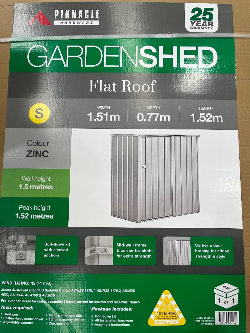Garden Shed, 1.5 x 1.5 Zinc, Pinnacle, Flat roof