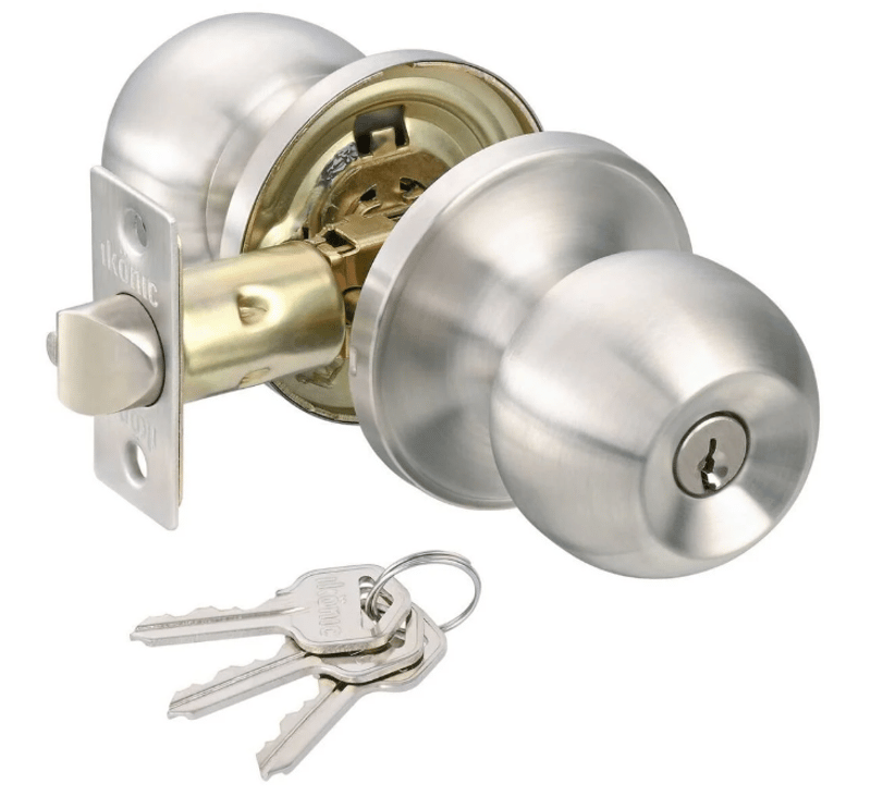 RRP $34 ea, Ikonic Brushed Nickel Ruby Entry Knob Set, quantity 20, sold as lot