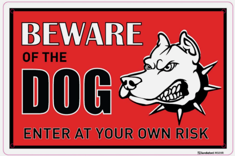 RRP $16 ea, Sandleford MS09R Red 'Beware of the Dog' Sign - 300 X 200mm, quantity 20 sold as lot