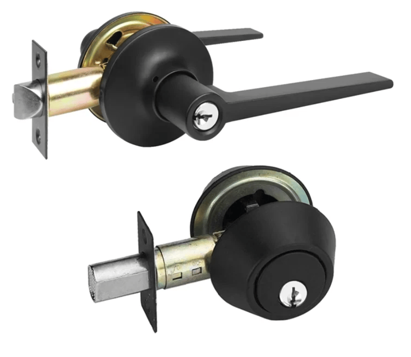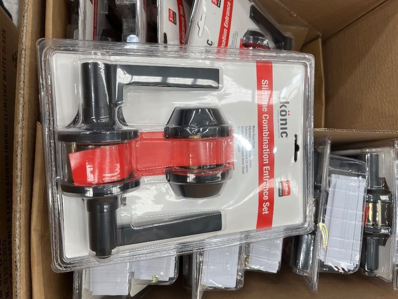 RRP $40 ea, Ikonic Combination Slimline Entrance Lever Lock Handle Set Deadbolt Matte Black, Quantity 10, sold as lot