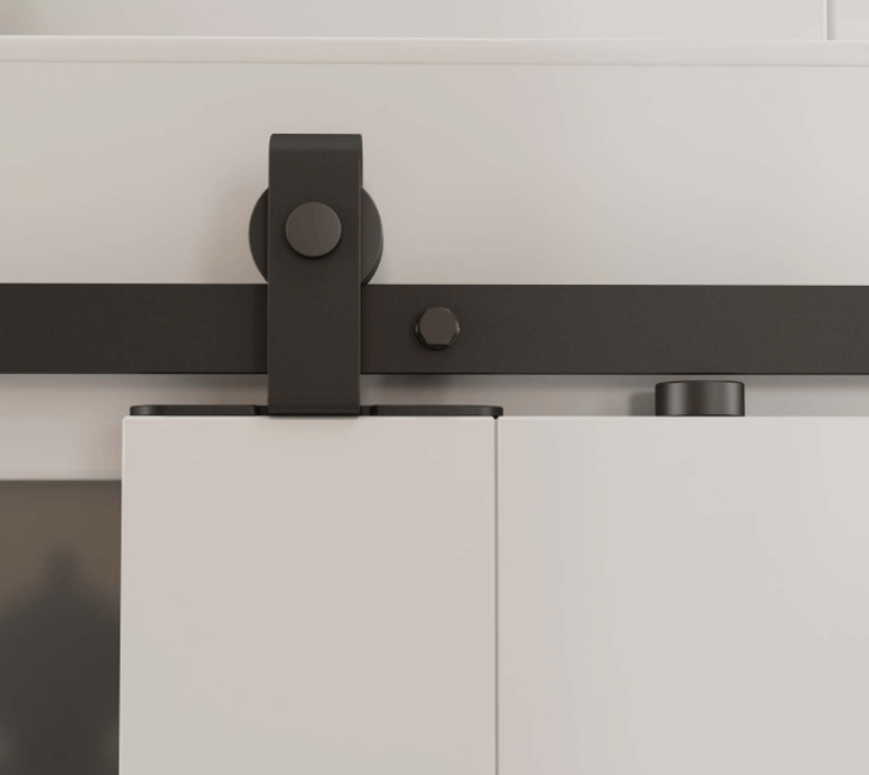 RRP $88 ea, Rolltrak Matte Black Cabinet Barn Door Track Top Fix Set, quantity 2 per box, sold as lot