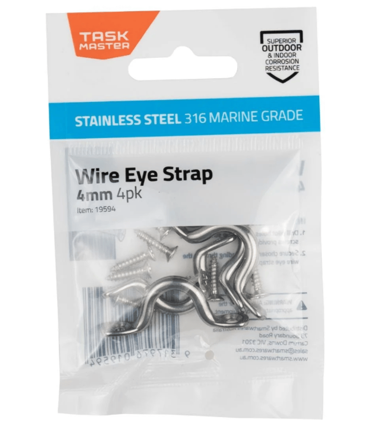 Bulk - Taskmaster 4mm 316 Stainless Steel Wire Eye Strap - 4 Pack, quantity 50 Packs, sold as lot