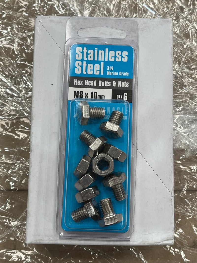 x200 HEX BOLTS & NUTS Packs, M8 x 10MM STAINLESS STEEL 316, SFA320, 34 boxes, 6 packs per box, total quantity 200+ packs