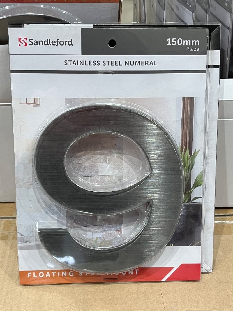 Stainless steel numeral 9, floating stud mount, quantity 60, sold as lot