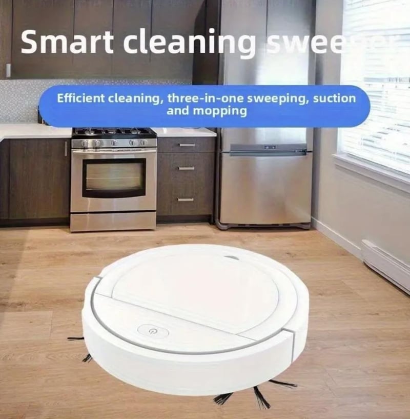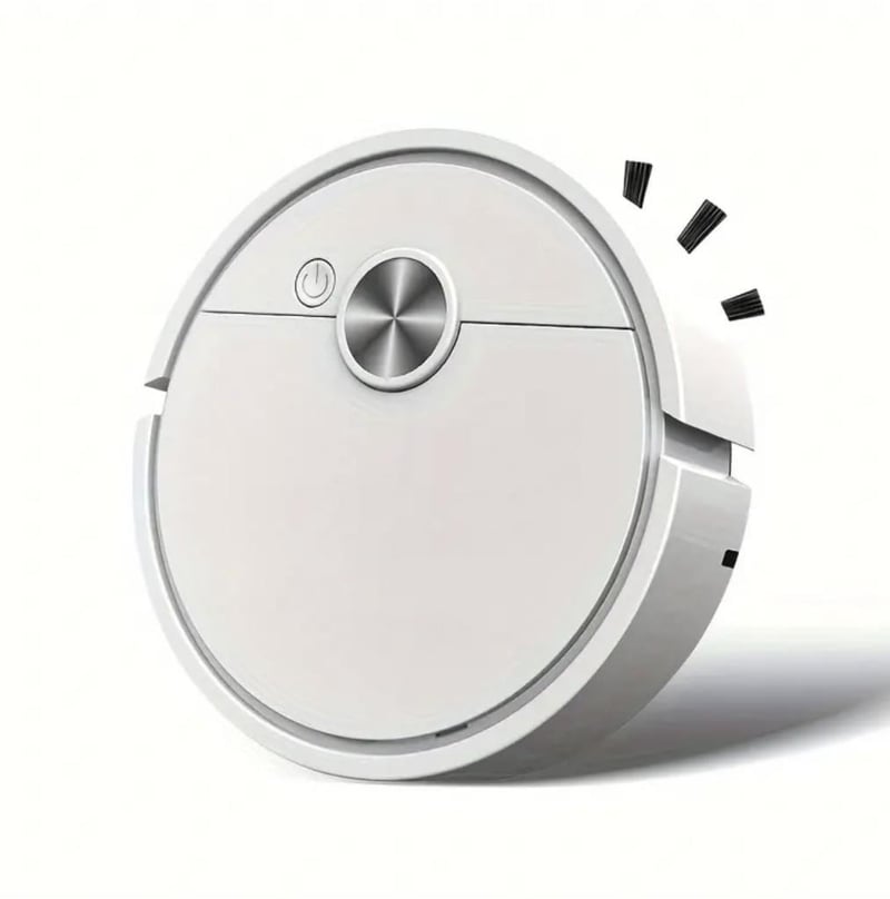 Ultra-Thin Mini Robot Vacuum Cleaner, Compact Design for Hard-to-Reach Areas, Dual Brush Efficient Floor and Surface Cleaning, Stylish Multi-Purpose Home Cleaning Tool, White, Battery Not Included