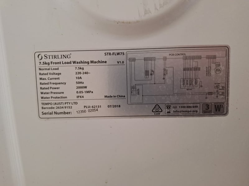 Stirling 7.5kg Front Load Washing Machine, White FinishDimensions H:85cm W:60cm D:59cm