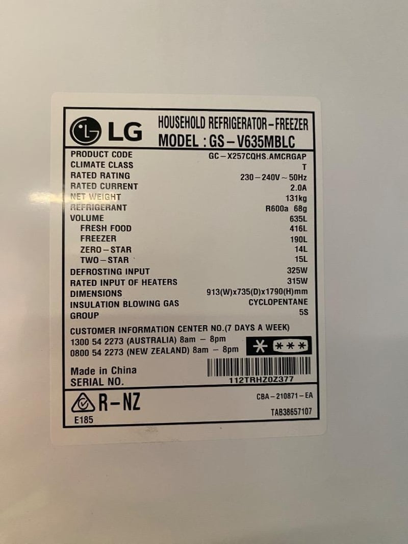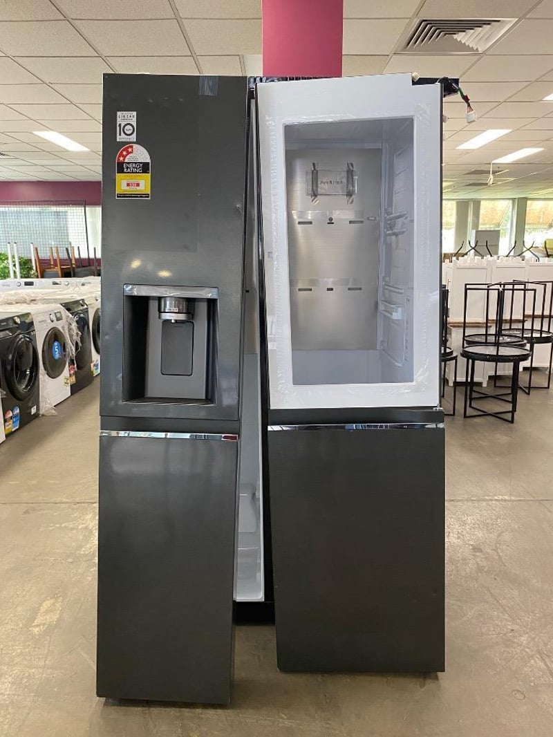 Refrigerator/Freezer, LG GS - V635MBLC, 416/190 Litre, 2 Door, Water Dispenser, Ice Maker, S/N: 112TRHZOZ377, Dark Grey Stainless SteelDimensions: H180CM x W90CM x D72CMNote: Requires Assembly, Components May Be Missing, Signs of wear