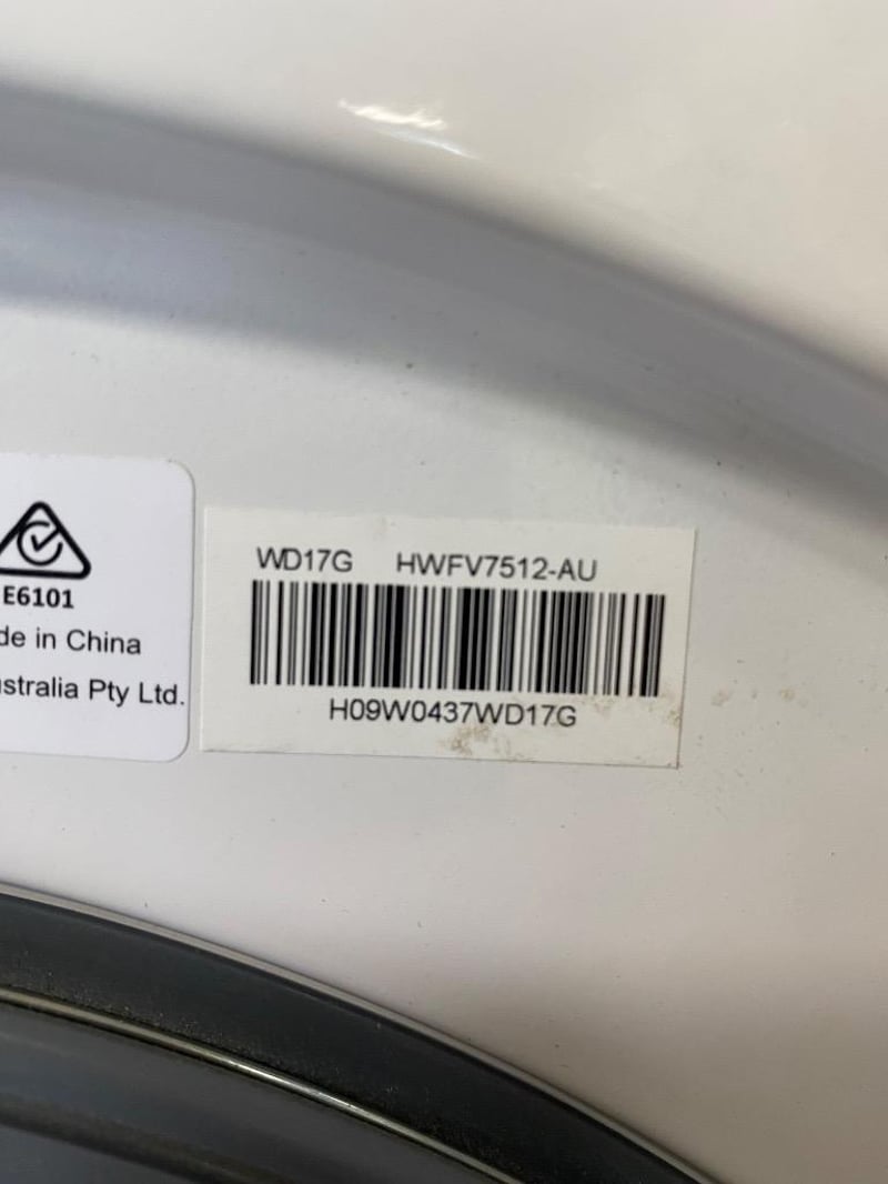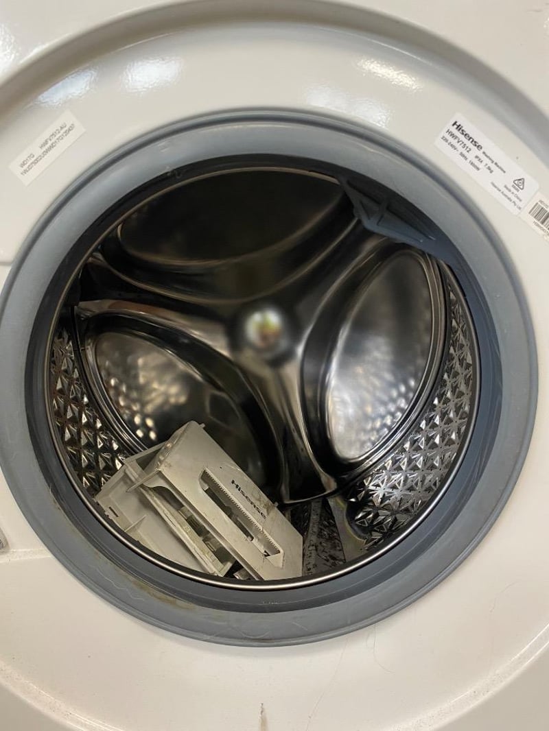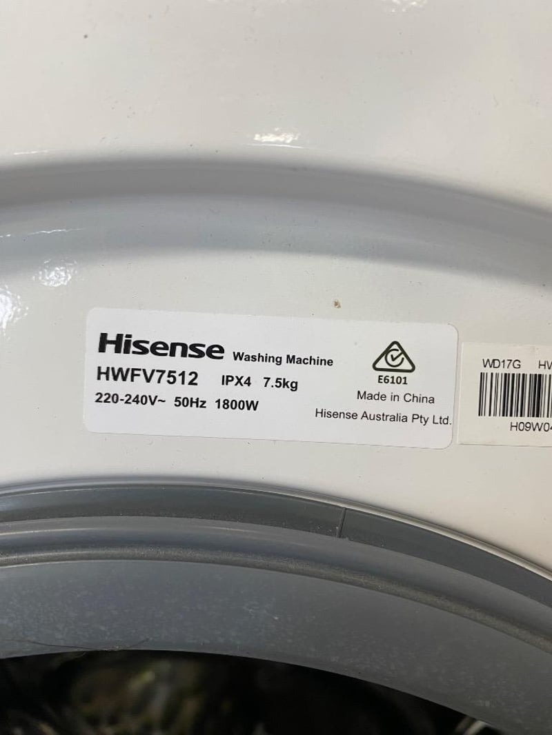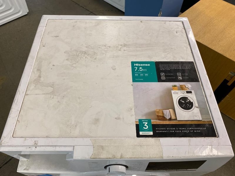 Washing Machine, Hisense, Front Loader, 7.5KG, M/N: HWFV7512, S/N: HO9W0437WD17G, WhiteNote: Signs of Wear, Some Structural Damage, Refer to PhotosDimensions: H85CM x 60CM x D60CM