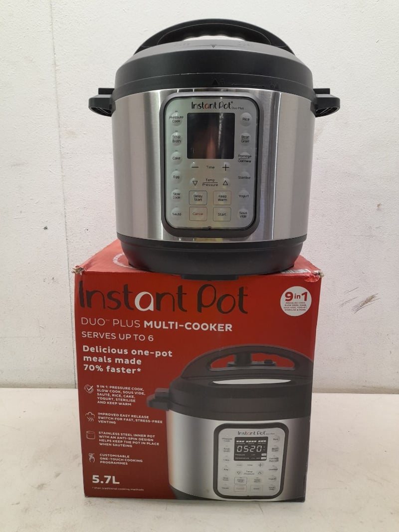 Instant Pot Duo Plus 9-in-1 Multi-Cooker, 5.7L Electric Pressure Cooker, Slow Cooker, Rice, etcSold as lot