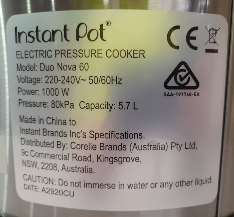 Instant Pot Duo Nova 60 Electric Pressure Cooker - 5.7L / 1000W Multi-CookerNote: Missing lid for cooker