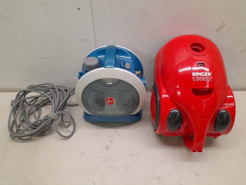 Hoover Twin Tank Multi-Steamer (1600W Max) & Singer 1300W Vacuum Cleaner Note: No vacuum pole or head included, only base of item, units are untested Sold as lot