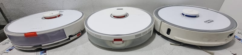 Robo vacuum lot, includes 3x units, 2x roborock & 1x Xclea brand, all units whiteNote: untested, shows signs of wear and tearSold as lot