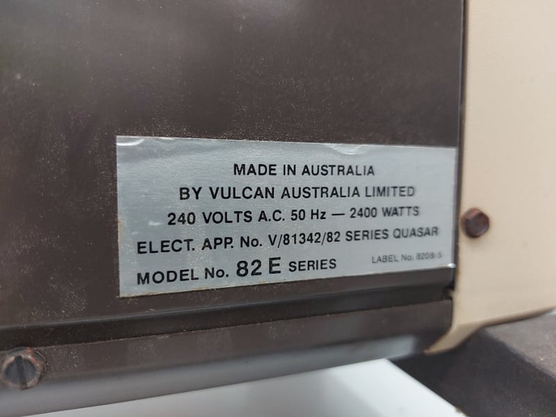 Calcan Quasar Elite, Heater, Model No. 82E Series, Dimensions 75cmW×57cmH×27cmD