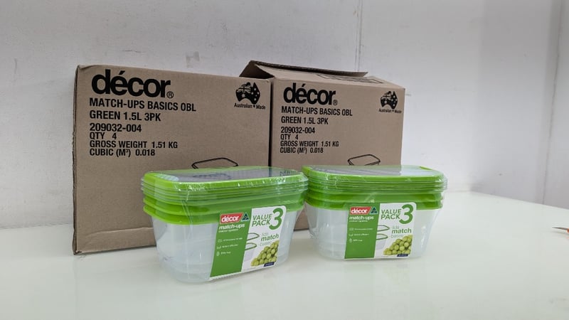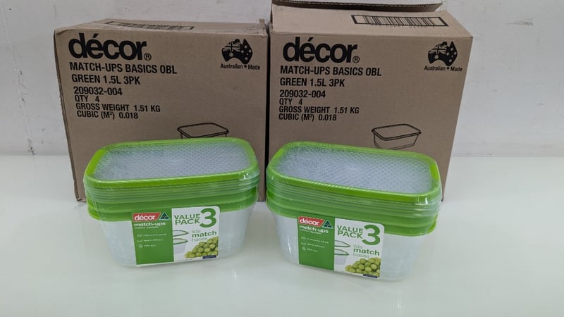 Decor Match Ups Basics OBL, Code: 209032-004, 1.5 L 3 Pack, Colour Green/Clear, Quantity 8Sold As Lot