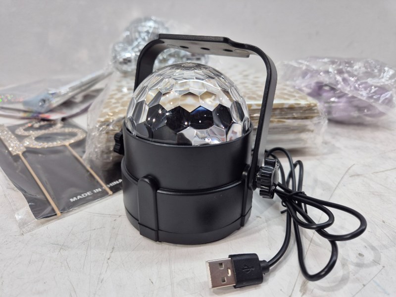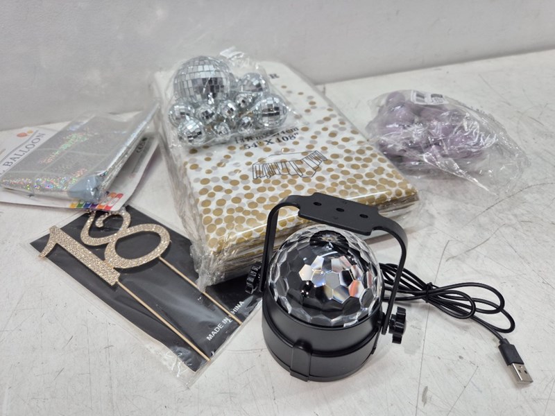 Party Pack, Includes USB Disco Light, Table Cover, Cake Topper and MoreSold As Lot