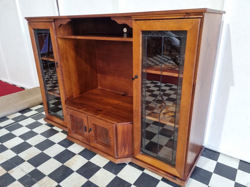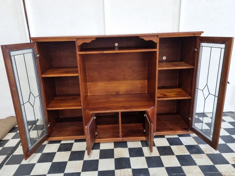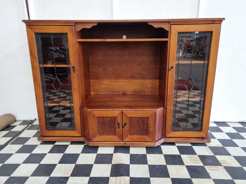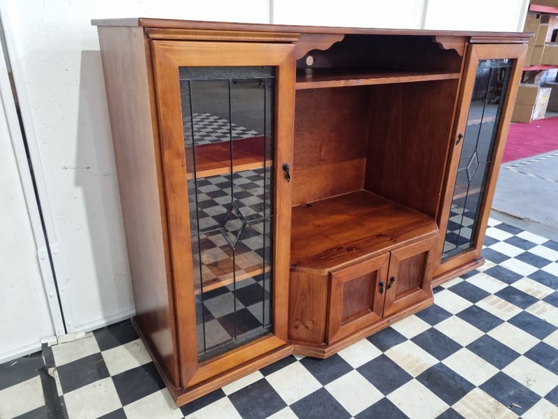 Timber And Glass Door TV Entertainment Unit Dimensions 1300H x 600D x 1880W