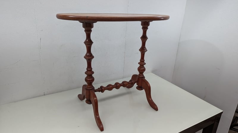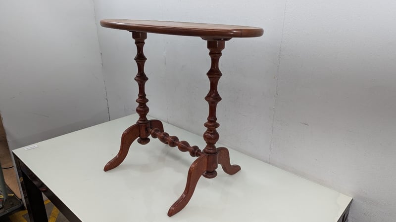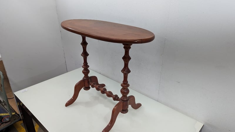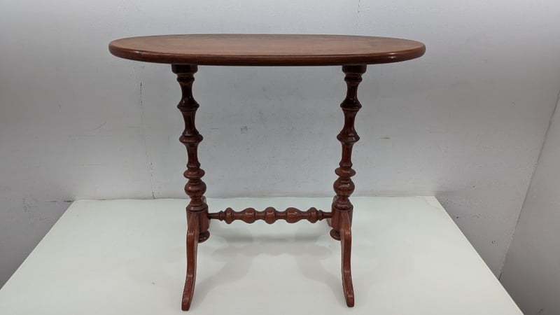 Timber Hall Table, Timber Turned Legs, Oval Shaped Top, Dimensions 85cm(H)×87cm(W)×50cm(D)