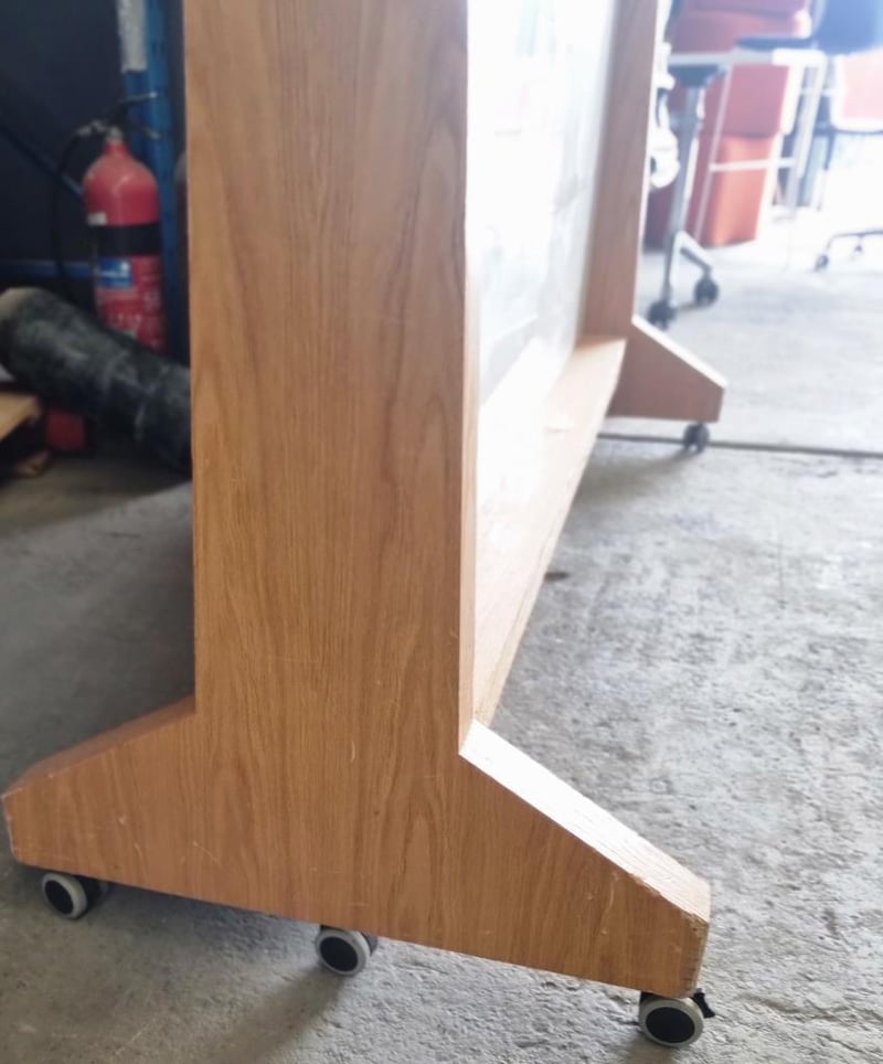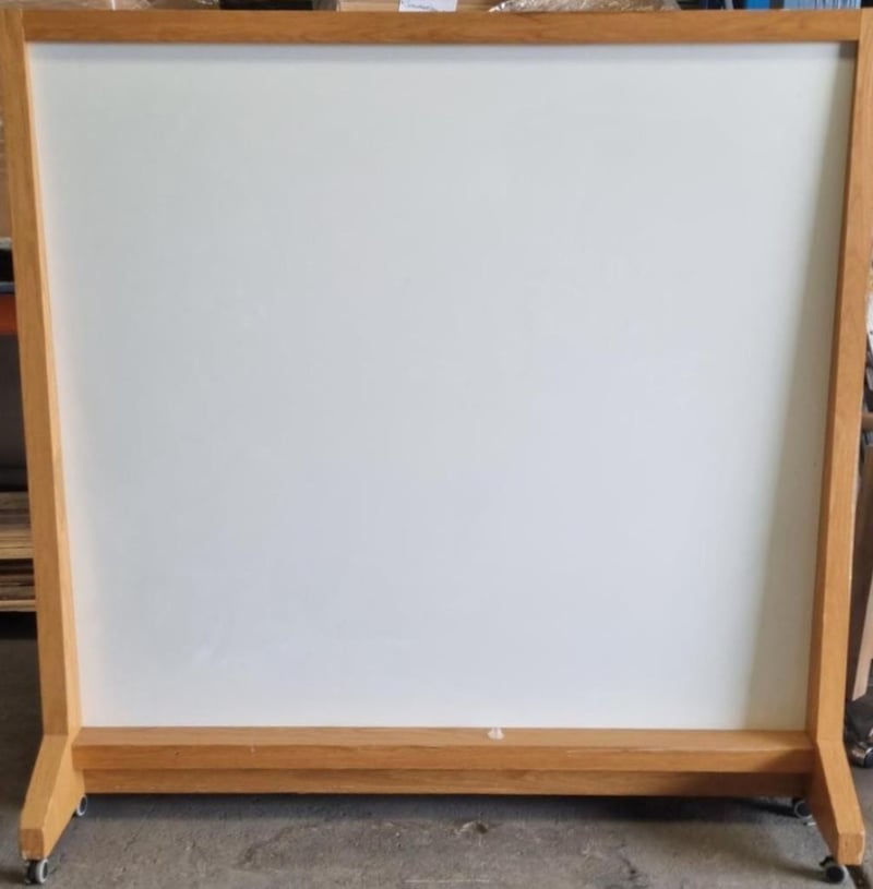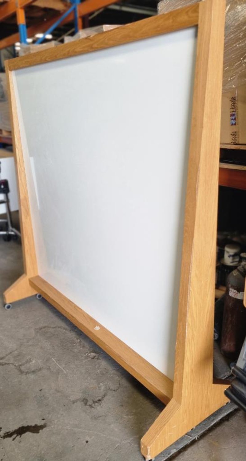 Mobile Whiteboard, Timber Frame, Double sided Dimensions: (H)181CM x (W)180cm x (D)60cm Note, Signs of wear