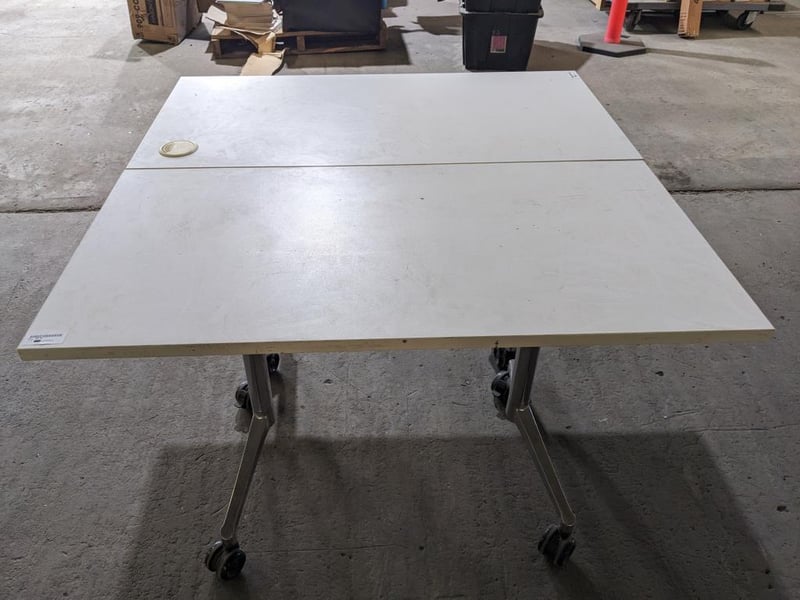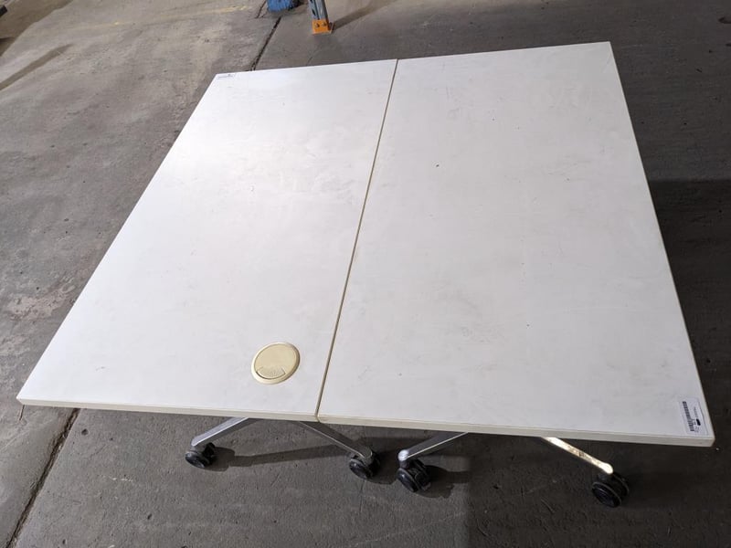Office furniture: White Table (foldable).Dims: 74 x 80 x 160cmNOTE: Signs of wearSold as lot.