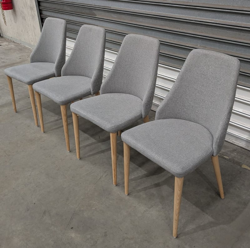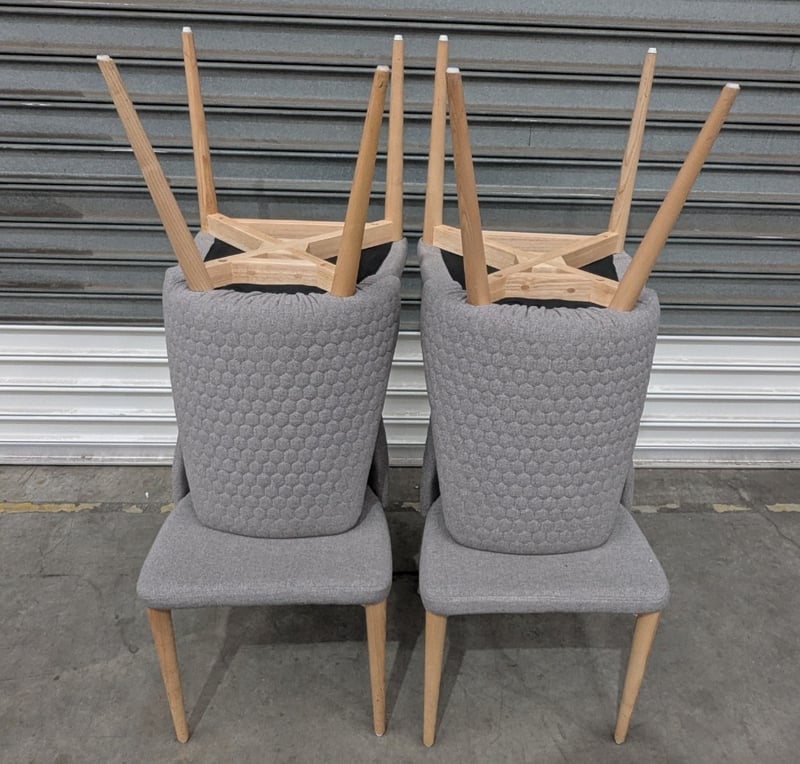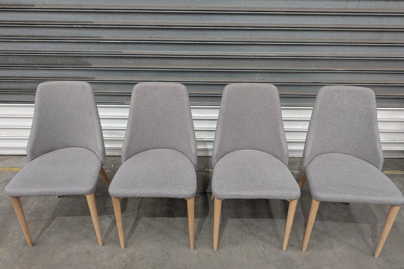 Rosie Dining Chairs, Grey with Solid Wood Legs, Quilted pattern on the back