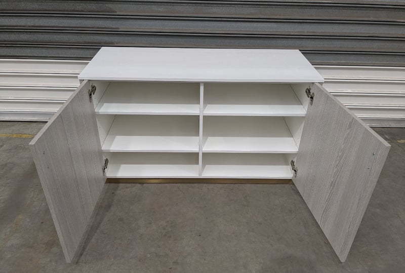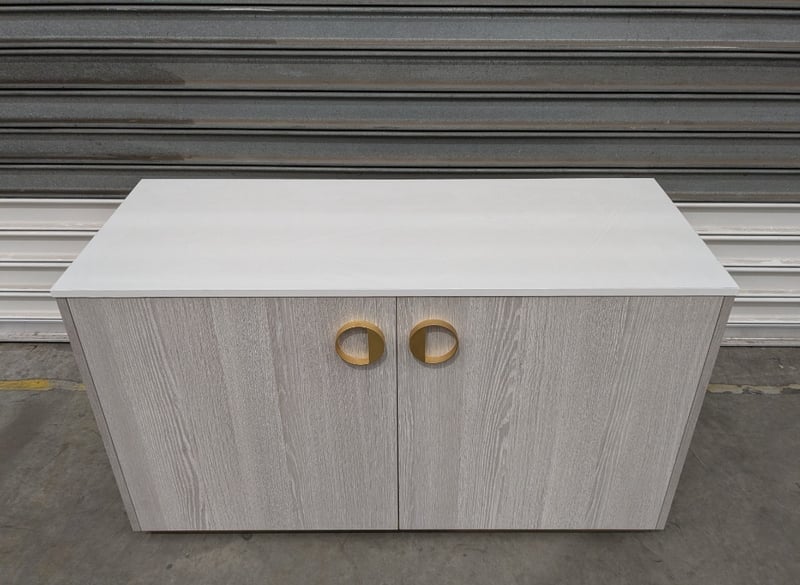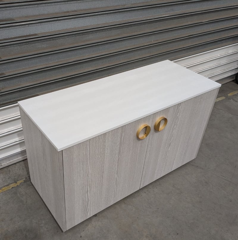 Solid Desk Cabinet,White and light wood-toned With circular Gold handle, for multiple purpose use