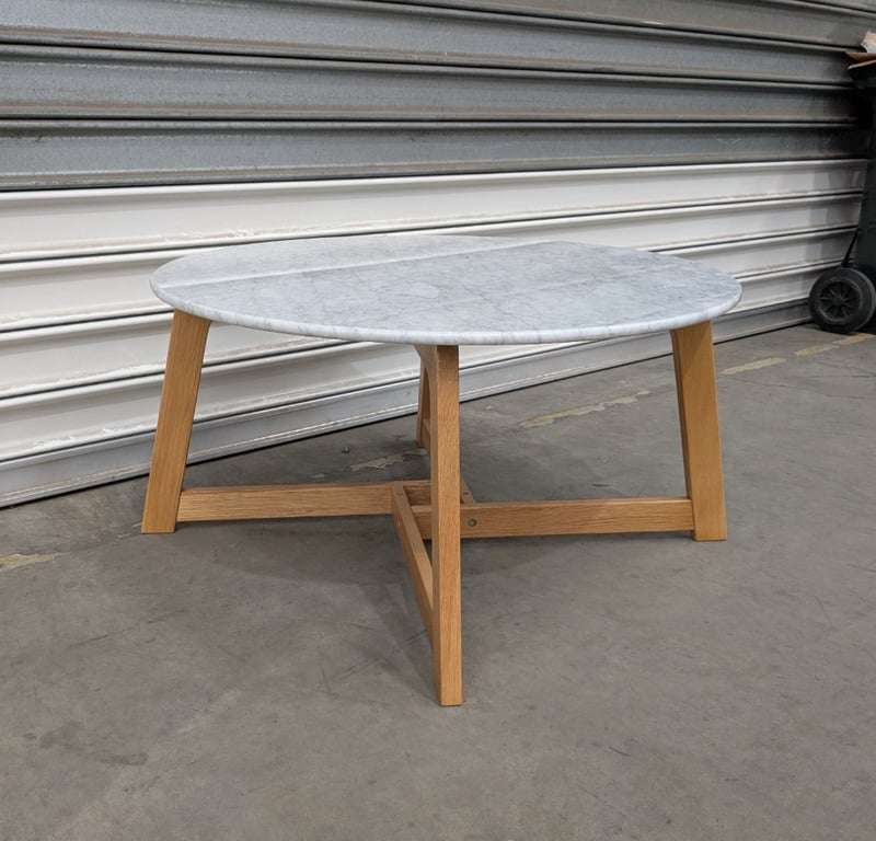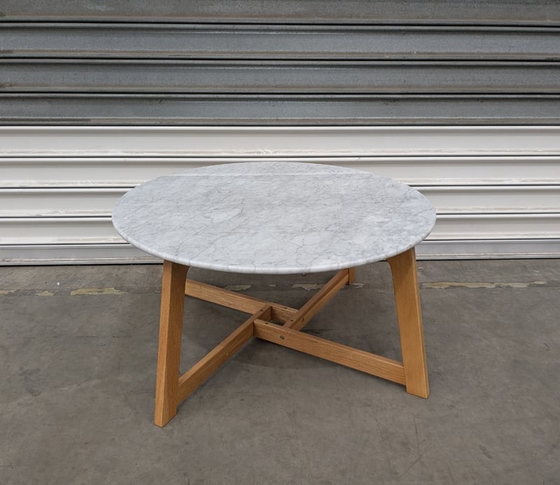Round Coffee Table, Light Marble Top and Timber Base, Detachable from BaseDimensions: 80x80x41cm