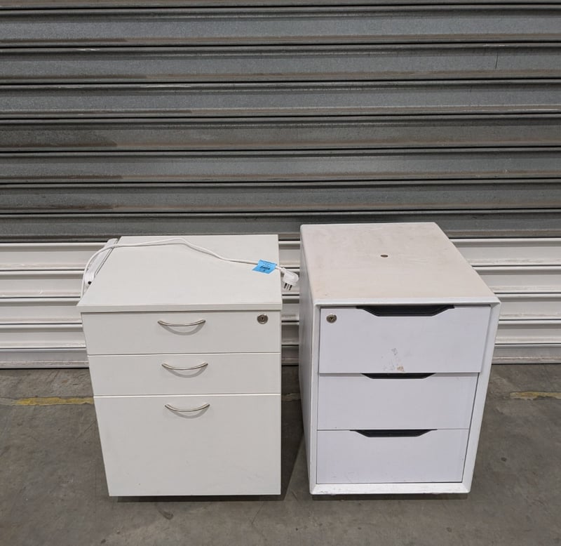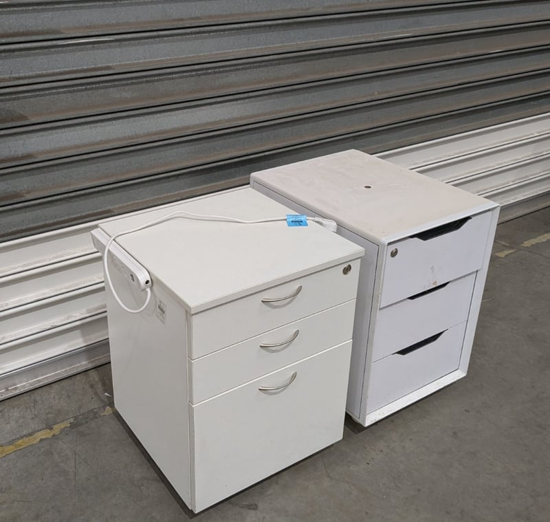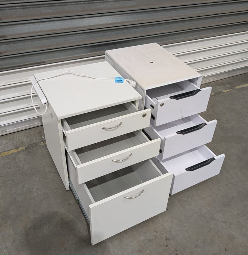 Office storage cabinets, White Wooden Framed, 3 Draws with Safety Lock Dimensions: 46x47x64cm, 56x43x63cm