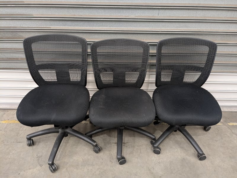Black Ergonomic Office Chairs, Mesh backrest and cushioned seat Qty:3