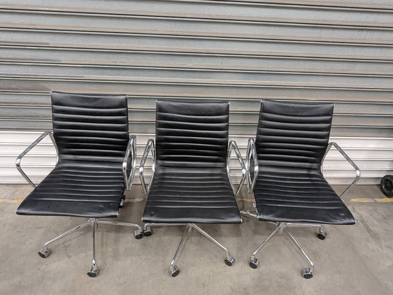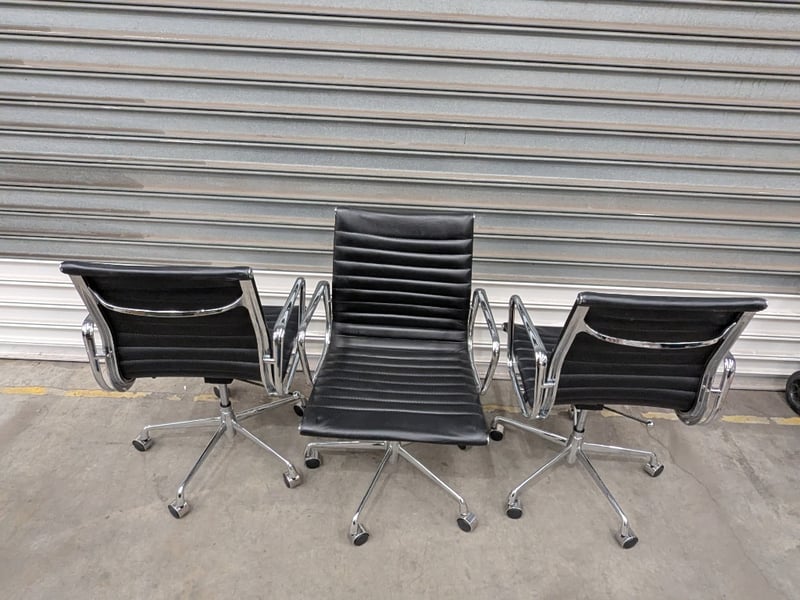 Eames Office Chairs, Ribbed Leather Seat with Chrome Aluminum FrameQty: 3