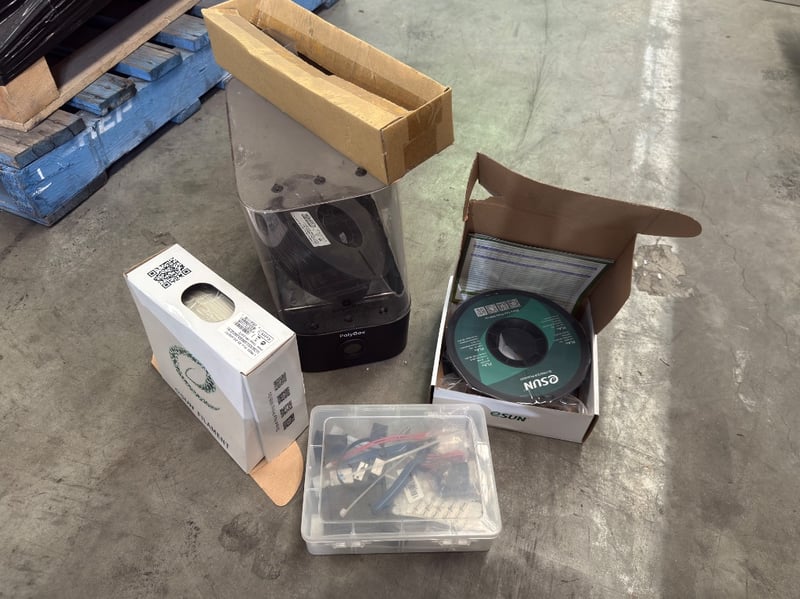 Assorted 3D Printer Accessories including eSUN Filament Rolls, PolyBox Filament Moisture Protection And More.