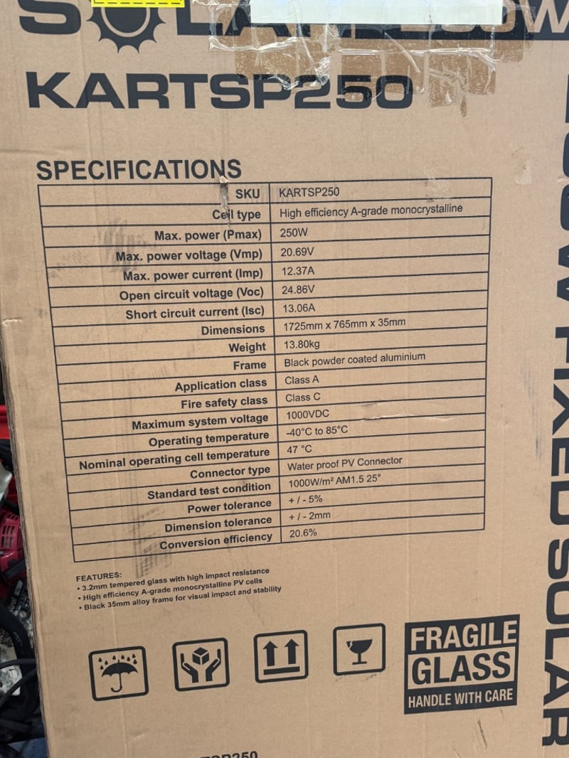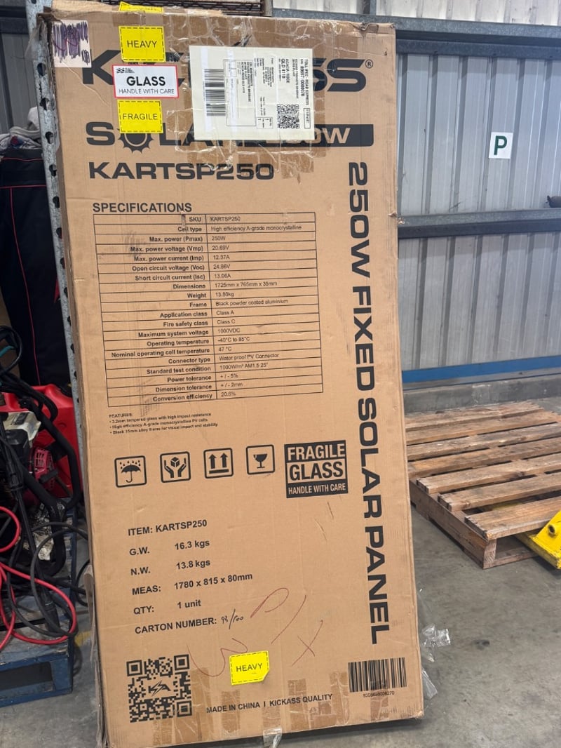 KICKASS 12V 250W FIXED SOLAR PANEL, GLASS ROOF TOP