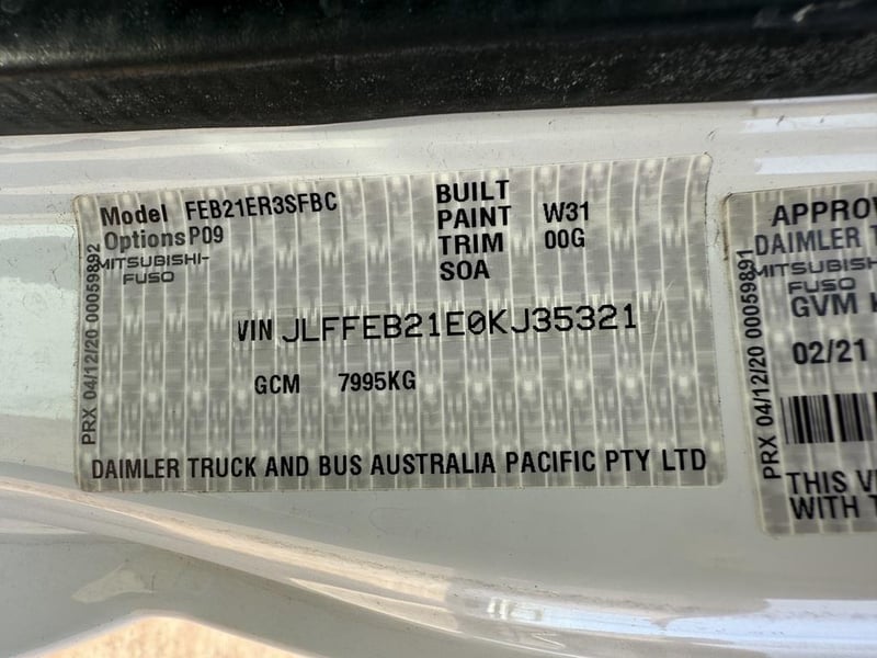 2021 Mitsubishi Fuso Canter Refrigerator Truck Price Guide - $32,000 - $38,000 (Based on standard condition unmodified, excluding attachments and/or additions) Year: 02/2021 Make: Mitsubishi Model: Fuso Canter 515 Body: Pantech/ Refrigerator Truck Configuration: 4x2 RWD Odometer Indicated: 161,101 kms Transmission: Automatic Suspension: Leaf/ Spring Seats: 3 Engine: 3L 4 Cylinder Diesel Engine Number: 4P10E57024 VIN: JLFFEB21E0KJ35321 Description/Extras: - Aircon - Power steering - Power windows - Multimedia Touch Screen - Remote Central Locking - Reverse and 360 Cameras - Dash Camera - Working Thermo King Cold Refrigerator Unit - Fridge Curtains - Fold Down Stairs for Rear entry - Led Spotlights - Tool box - Tray Dimensions Length 3600mm x width 2000mm x Height 1850mm - Spare Wheel - Marks and scratches GVM: 4495 kgs GCM: 7995 kgs Note: Please see photos & inspect for damages. Contact Nektarios Samiotis on 0477 237 839 or [email protected] Buyer is responsible for the removal of asset. As Standard Auction Practice all Vehicles are Sold Unregistered without Number Plates LOCATION: Onsite, Winnellie, NT