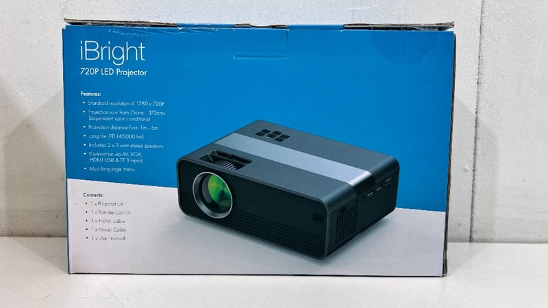 LED Projector, iBright, 720P, Dimensions approx: 21cm x 15 cm x 8 cm, Quantity: 1