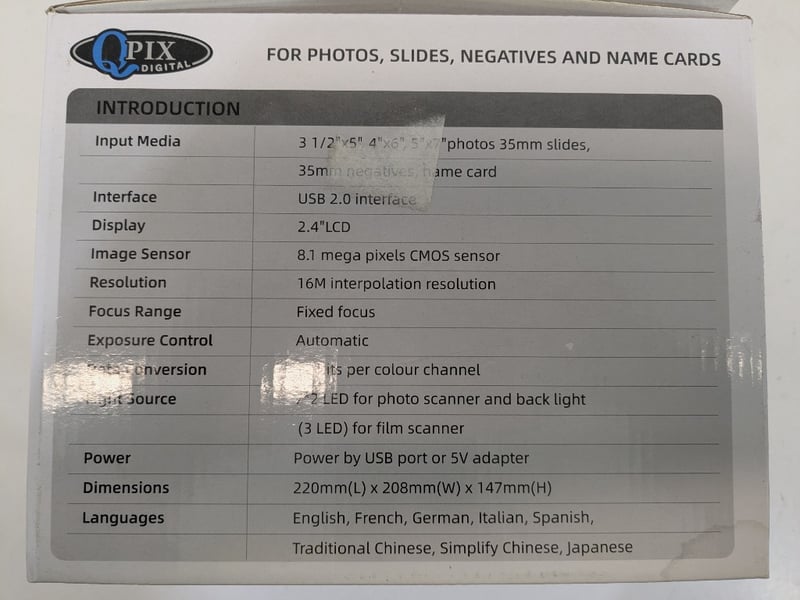 4 in 1 Photo Scanner, Qpix Digital 2.4 LCD Display USB 2.0 Interface 16 MP Interpolation Resolution SD/MMC card slot