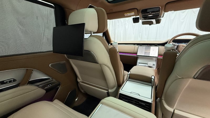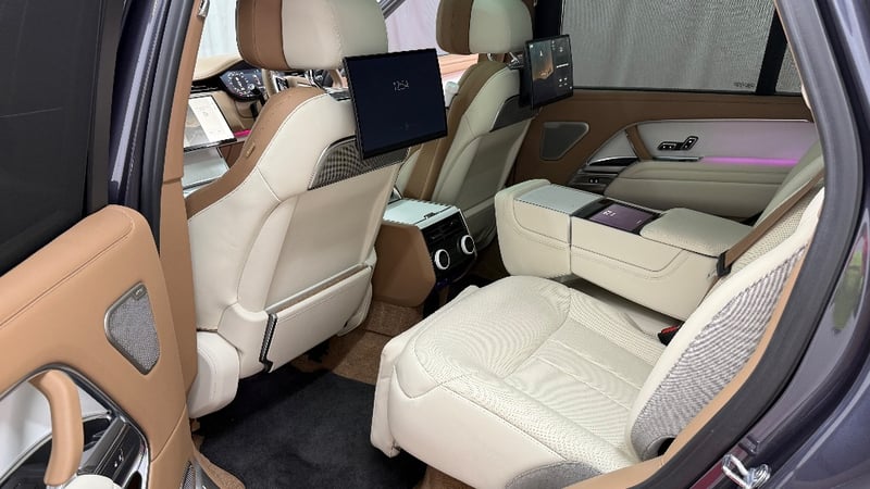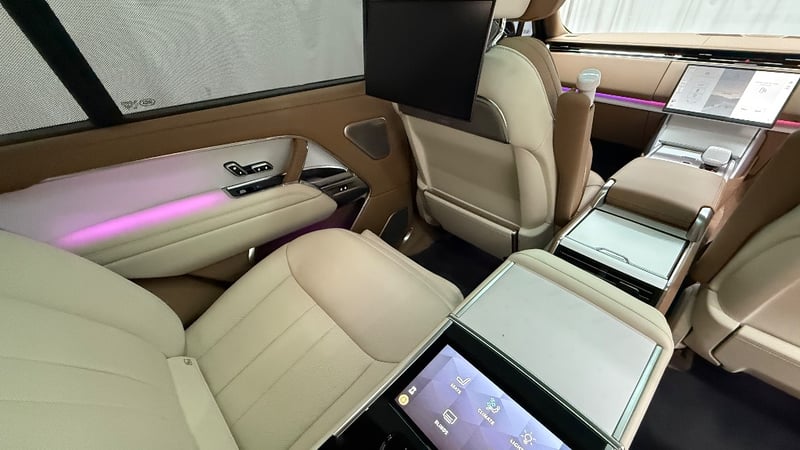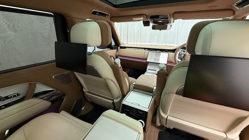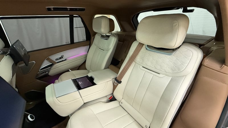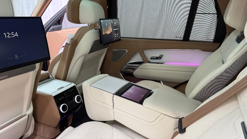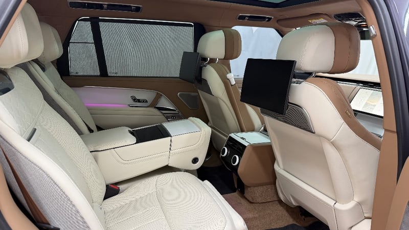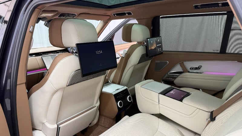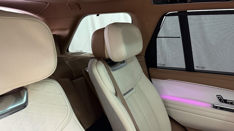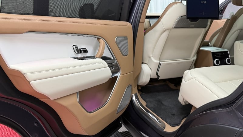 Commissioned through Land Rover Australia with virtually every conceivable SV option ticked, it wears the mesmerising Amethyst Grey Gloss exterior a deep, multi-layer paint that shifts from violet to gunmetal depending on the light paired with the breathtaking Veneer Satin White Ceramic interior and bespoke SV emblem. The extended wheelbase creates a rear cabin of private-jet proportions, finished in the finest semi-aniline leathers, deep-pile carpeting, and hand-crafted ceramic controls.
