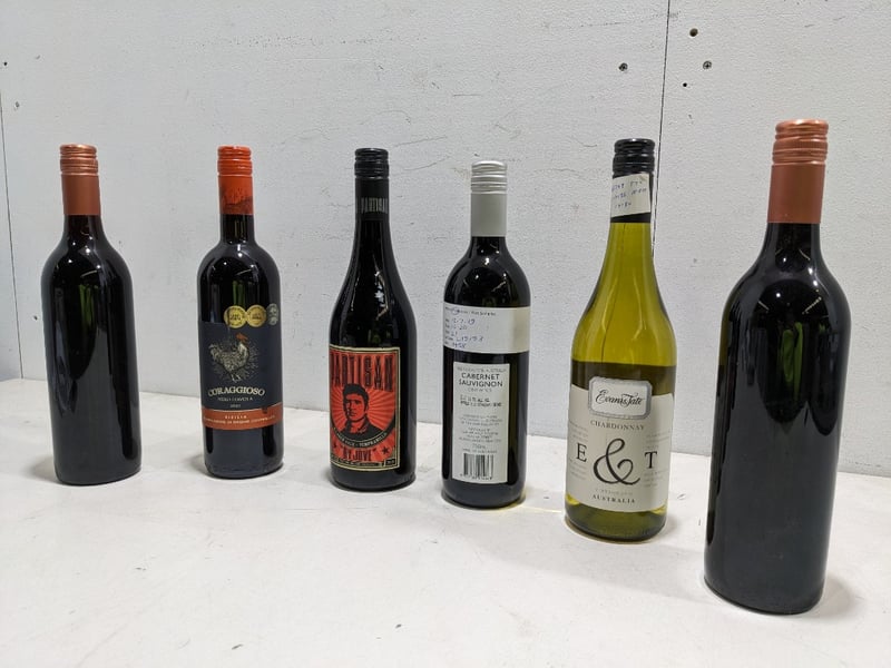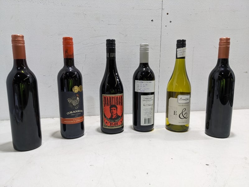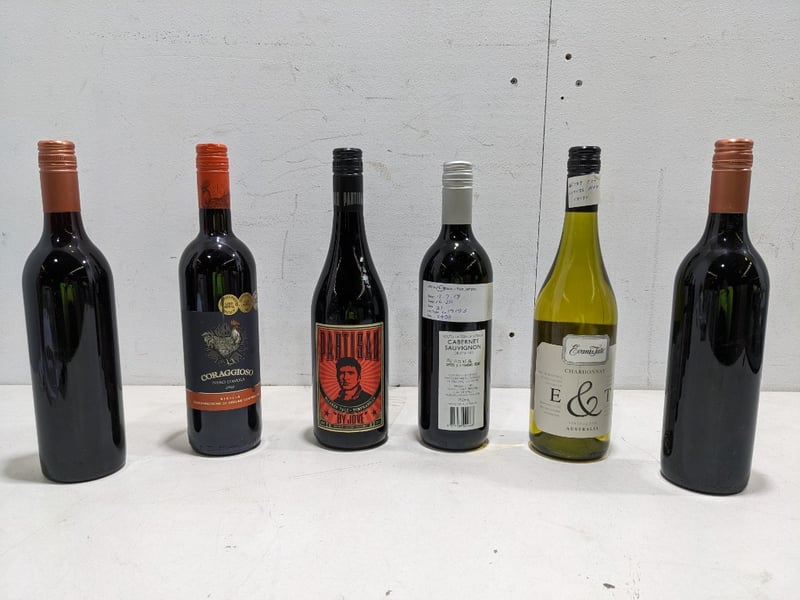 Assorted wine bottles 750ml, includes coraggioso, partisan and more..Sold as a lot.