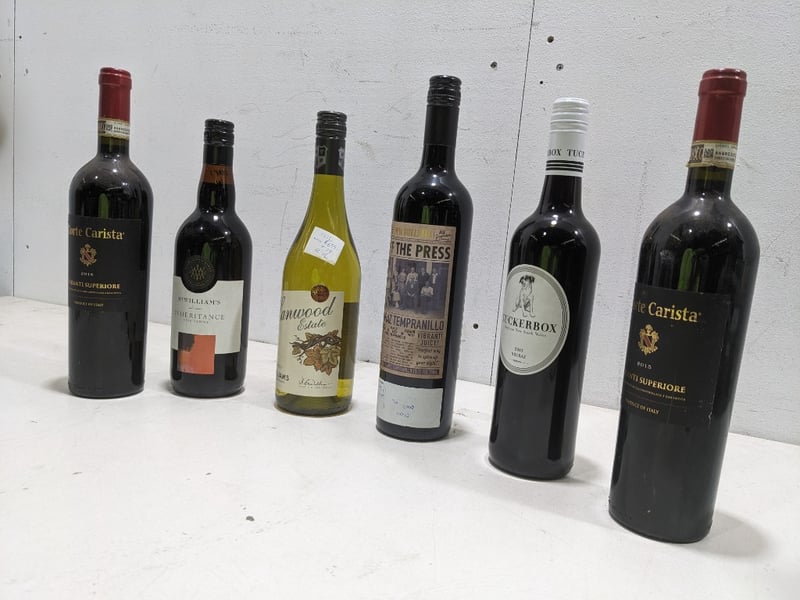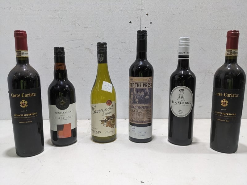 Assorted wine bottles 750ml, includes corte carista, hadwood and more..Sold as a lot.