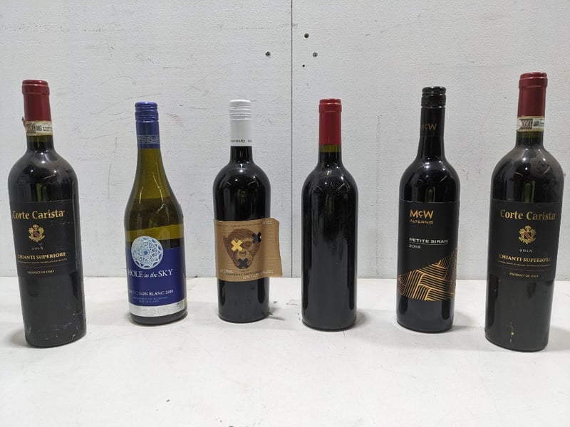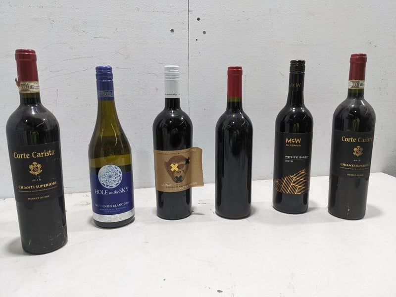 Assorted wine bottles 750ml, includes corte carista, hole in the sky and more..Sold as a lot.