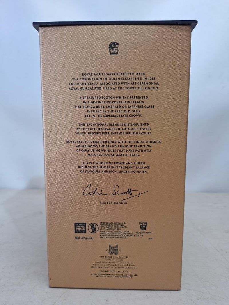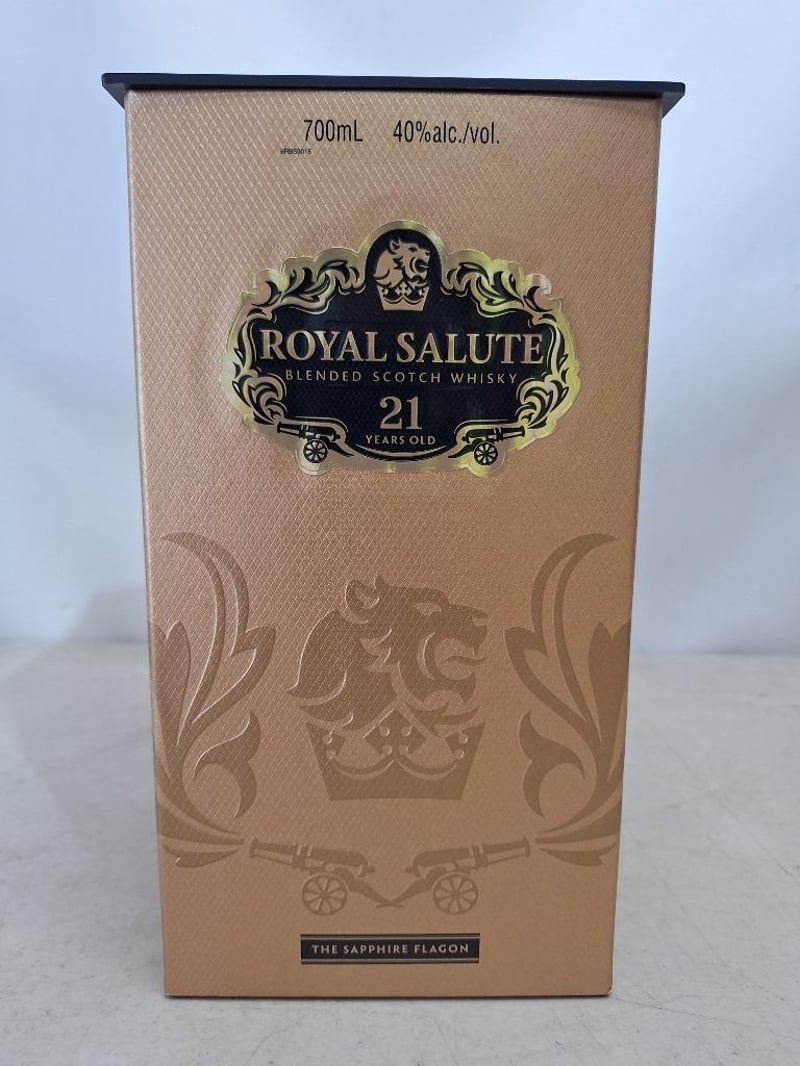 ROYAL SALUTE BLENDED SCOTCH WHISKY 21 YEARS OLD THE SAPPHIRE FLAGON, SEALED IN VELVET POUCH AND BOX, 700ML, 40%VOLSize: Condition: Excellent - Refer To Images+25