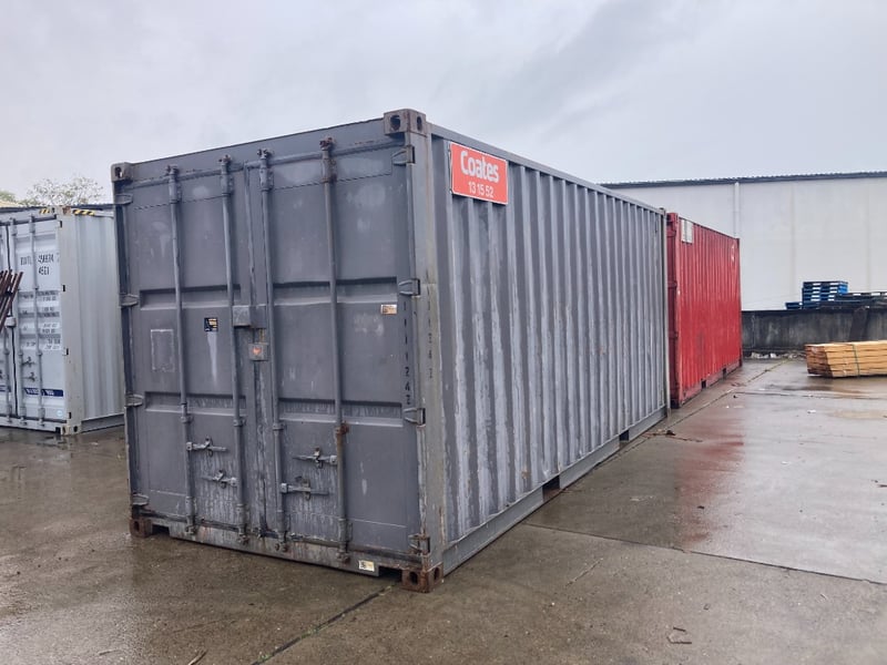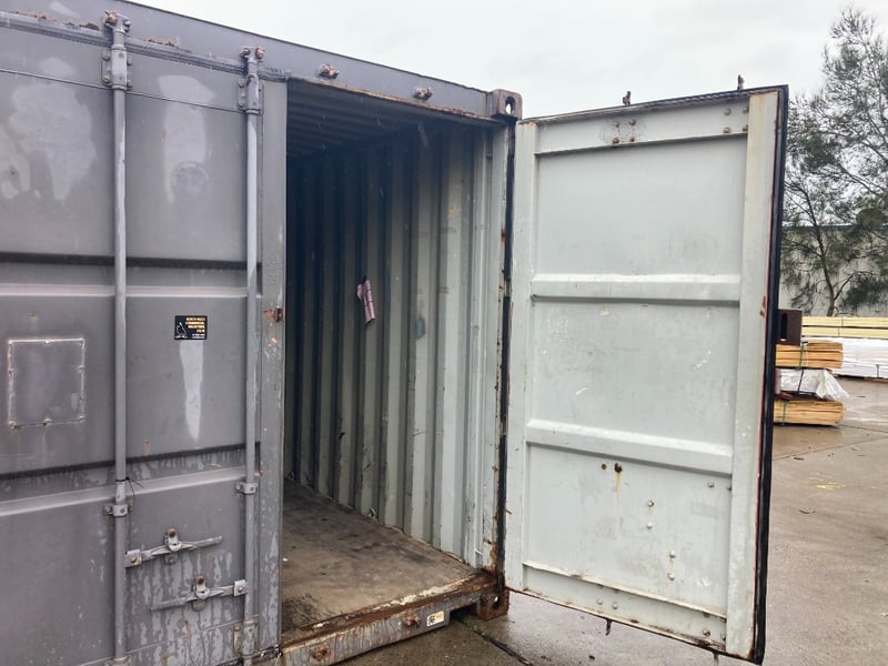 20ft Container Grey, Double doors to one end Has some leaks in back rear corner Has some body damage Has fork lift slots REF: 1111242 Location: Acacia Ridge, QLD Contact: Mark David - 0437 318 344