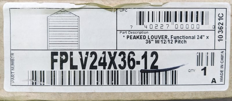 FPLV24X36-12, Peaked Louver, Functional 24" x 36" W/12/12 Pitch