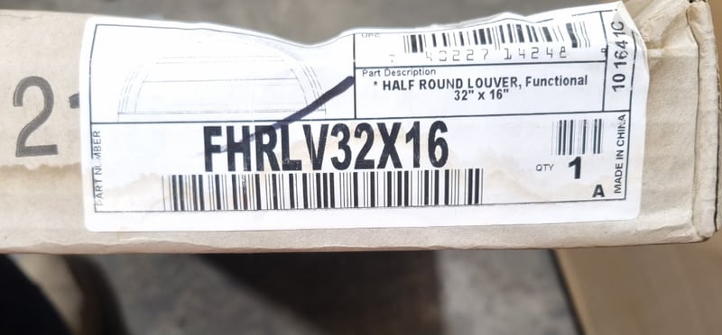 FHRLV32X16, Half Round Louver Functional 32"x 16"