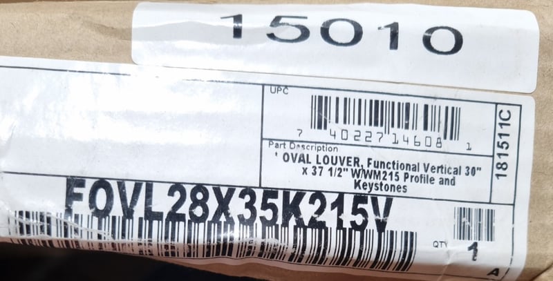 FOVL28X35K215V, Oval Louver, Functional Vertical 30" x 37 1/2" W/WM215 Profile and Keystones