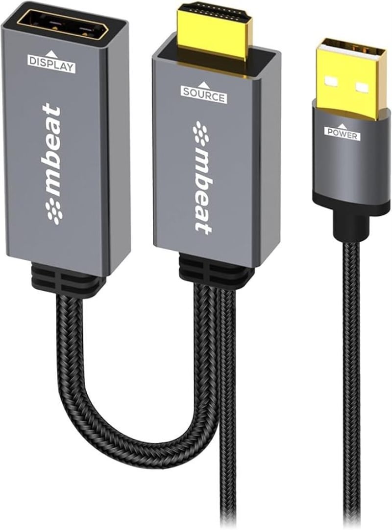 mbeat Tough Link HDMI to DisplayPort Adapter with USB Power - Black - REFURBISHED WORKING AS NEW CONDITION