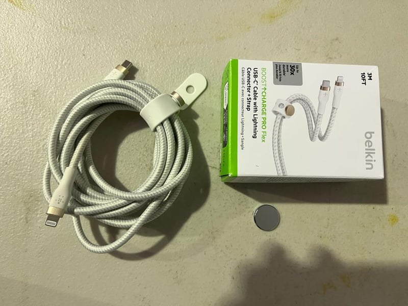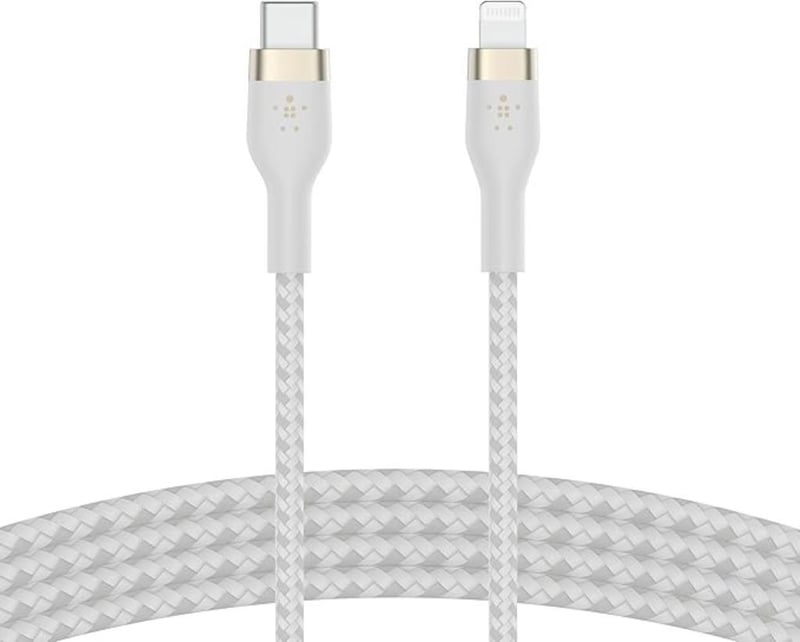 Belkin BoostCharge Pro Flex Braided USB Type C to Lightning Cable (3M) - White - REFURBISHED EXCELLENT CONDITION