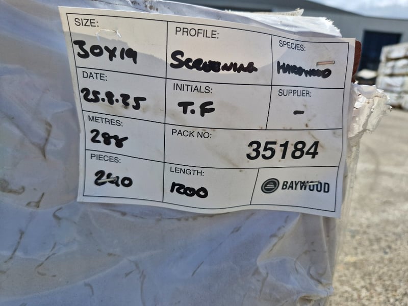 Hardwood Screening Mixed, 240 x 30mm x 19mm x 1200mm288Lm to PackSOLD AS LOT