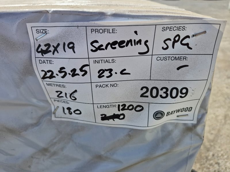 Spotted Gum Screening Mixed, 180 x 42mm x 19mm x 1200mm216Lm to PackSOLD AS LOT
