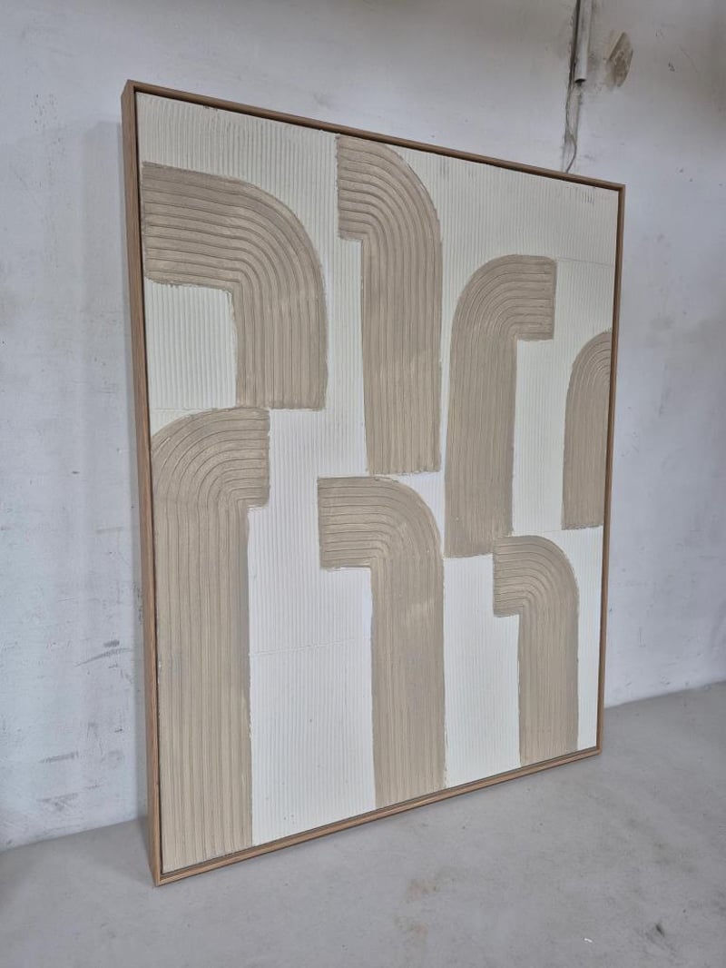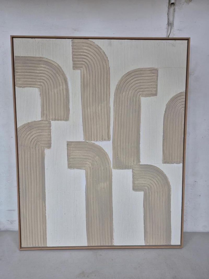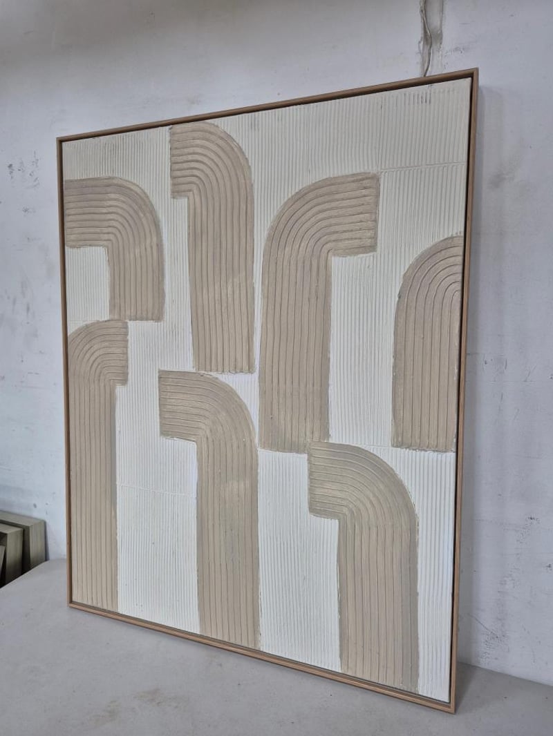 Picture, abstract, Karesansui style patterned, Brown and white, Timber Frame, Approx DimensionsH102 x W84 x D5