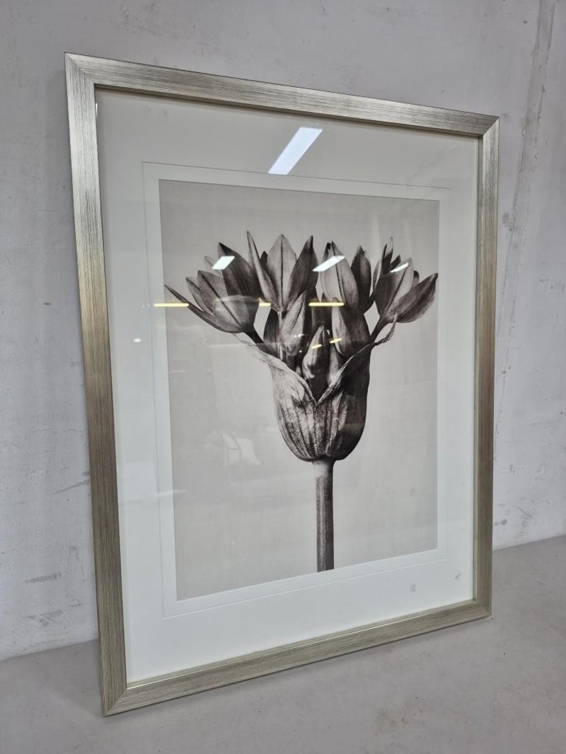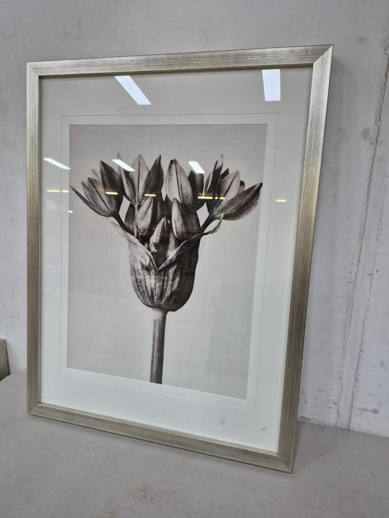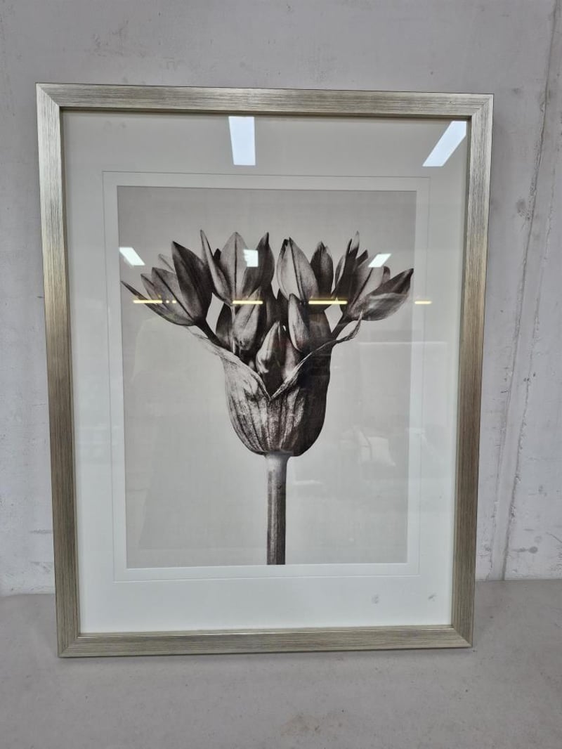 Picture, Blossoming Flower, Black & White, Silver Frame, Approx Dimensions H84 X W64 X D6