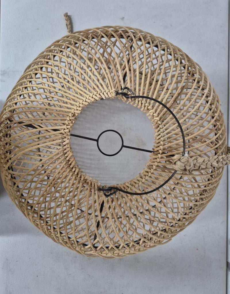 Lamp shade, Biku, Straw style, Cross Pattern, Black FrameApprox DimensionsH 50 X W 50 x D 50.